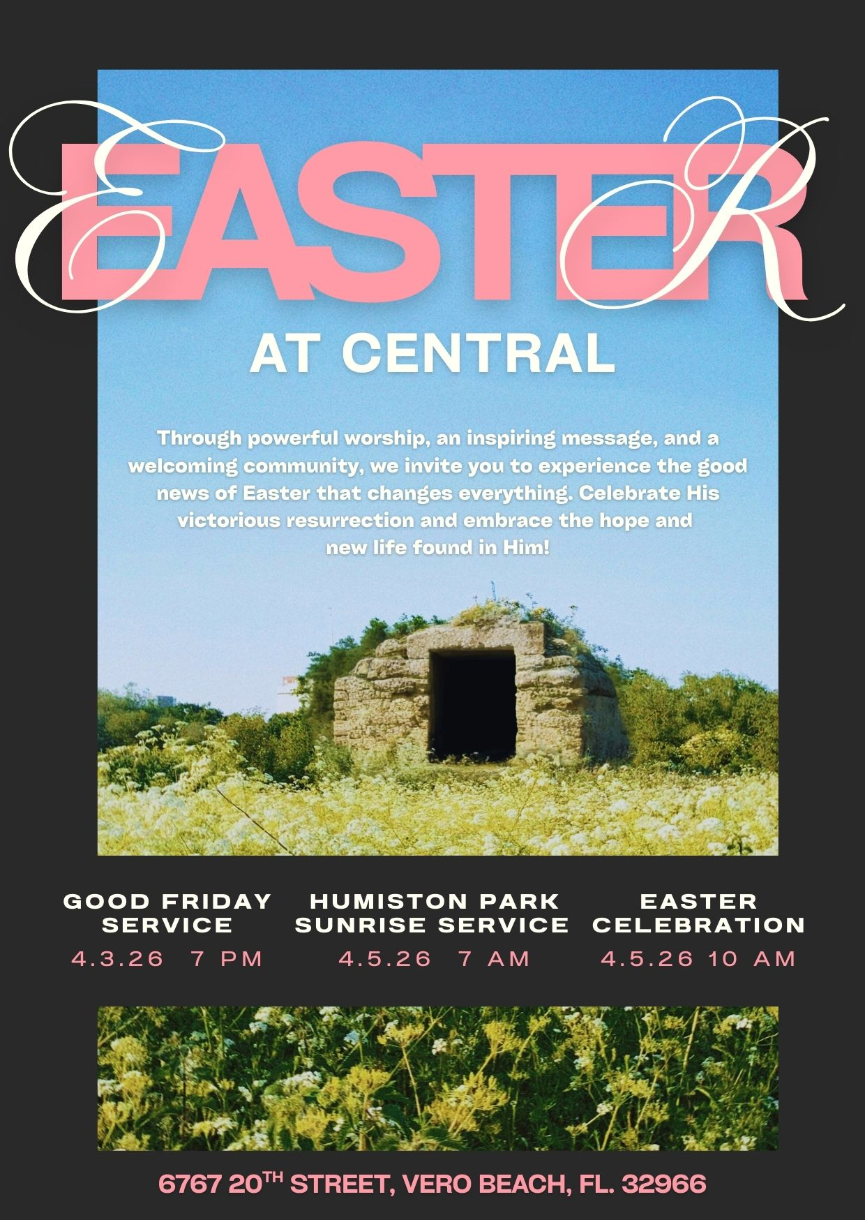 Through powerful worship, an inspiring message, and a welcoming community, we invite you to experience the good news of Easter that changes everything! A joyful, family-friendly celebration of new life and resurrection hope awaits—with fun Easter activities for kids, including an exciting Easter egg hunt and moments where the story of Easter comes alive in a way they can understand. This service is for everyone—family, friends, neighbors, and guests. All are welcome as we celebrate His victorious resurrection and embrace the hope and new life found in Him!